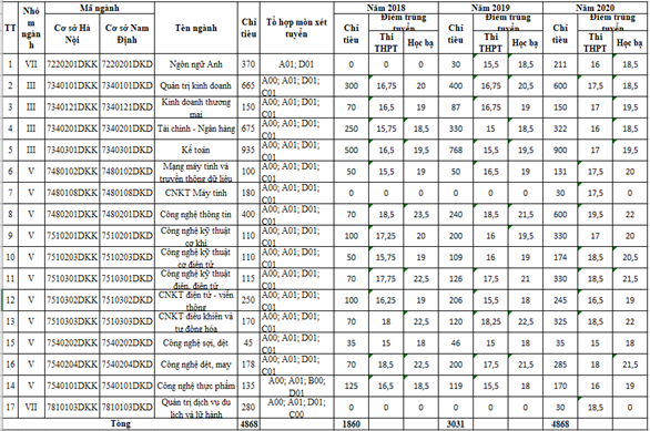 Thí sinh có thể tham khảo chỉ tiêu, điểm trúng tuyển vào trường 03 năm gần nhất: