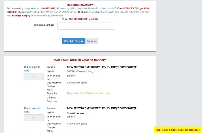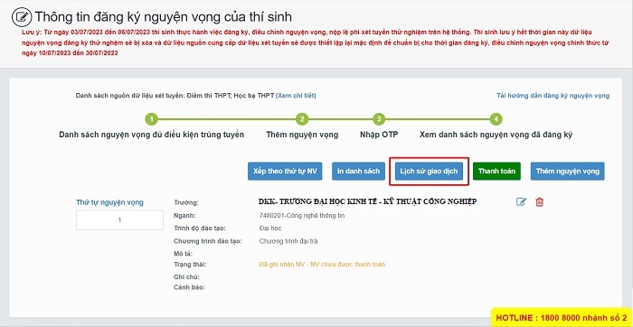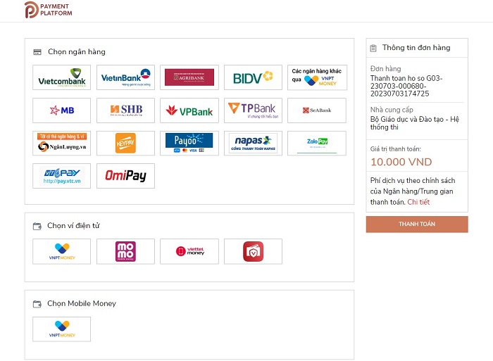 Cách thanh toán lệ phí nguyện vọng